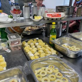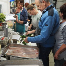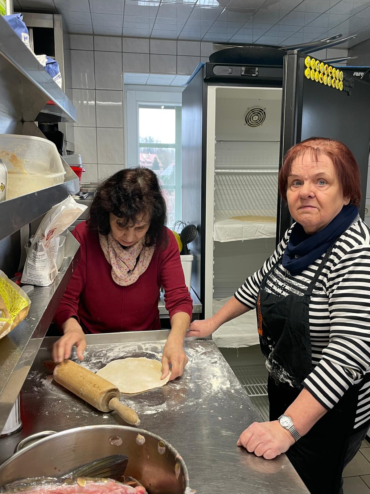 Was haben Hühnersuppe mit selbstgemachten Nudeln, Krautsalat, Hirschberger Bierfleisch und Apfelfilsel (Apfelauflauf) gemeinsam? Ganz einfach- diese Gerichte wurden alle am 9. März 2024 in der Küche der „Alten Säge“ in Dorf Wehlen zubereitet. So eine Aktion geht natürlich nur in der Zeit der Betriebsruhe der Gastwirtschaft und mit Zustimmung der Küchenchefin, unseres Mitglieds Marion Pusch. Sie hatte im Vorfeld bereits alle Zutaten für die verschiedenen Speisen besorgt und bereitgestellt. Die Auswahl der Gerichte erfolgte im Februar bei einem kleinen Vorbereitungstreffen. Nun mußten die 14 Teilnehmer nur noch in verschiedene Arbeitsgruppen eingeteilt und instruiert werden. Nach anfänglichen Abstimmungsproblemen wurden die einzelnen Akteure bald zu einem eingespielten Kollektiv. Die Arbeit in so einer großen Gruppe machte allen viel Freude.